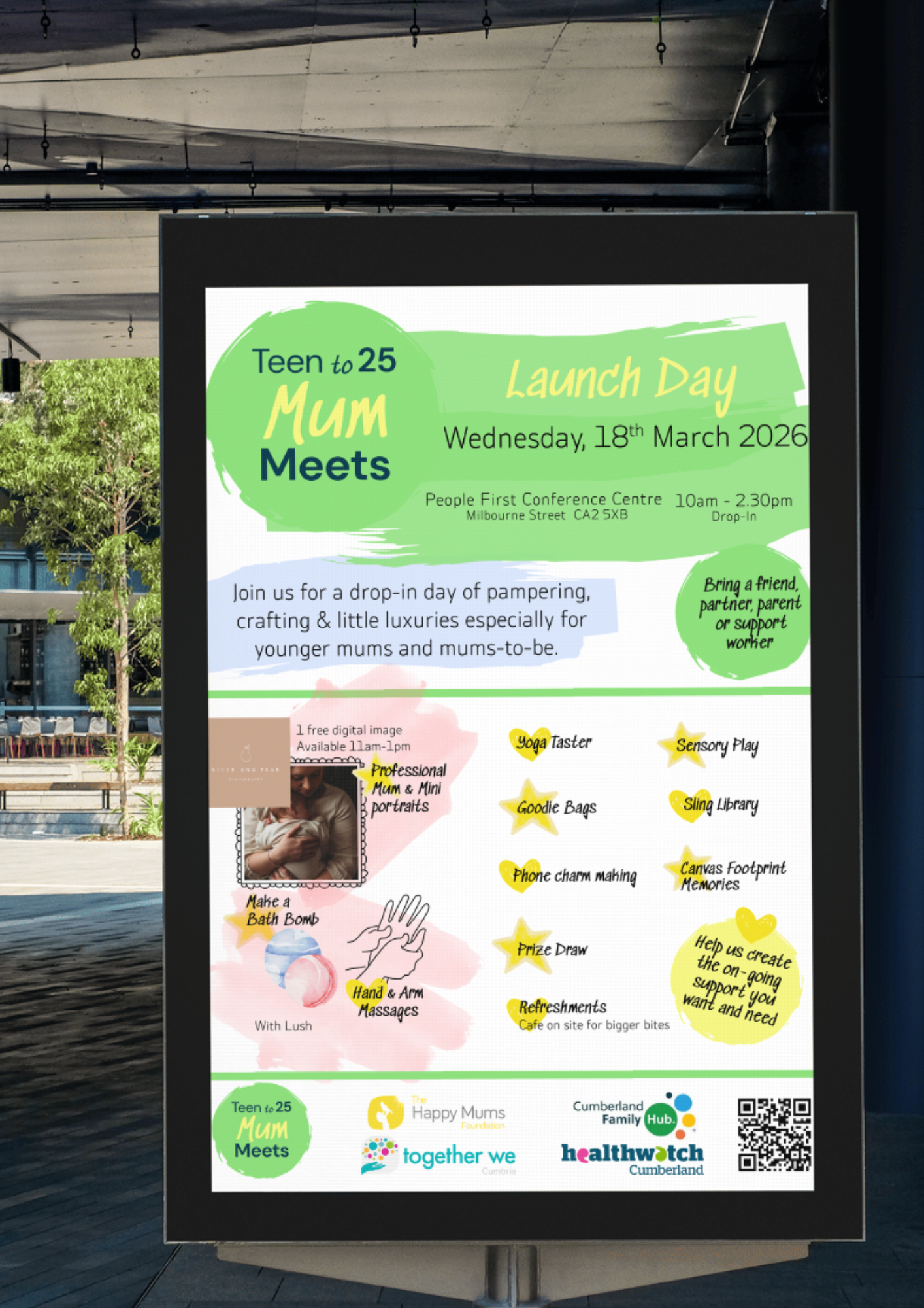 - Partners offering tasters (e.g., yoga, craft, baby groups), advice drop‑ins, or practical support.